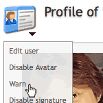 Verwarnungen können dort ausgesprochen werden, wo der Verstoß aufgetreten ist. Dies ist allerdings nur dann möglich, wenn Sie dort einen entsprechenden Verwarnen-Button vorfinden. Wenn Sie keinen Button sehen, rufen Sie das Profil des Benutzers auf. Dort können Sie auf das Profil-Icon klicken und das Menü mit den Moderationsoptionen öffnen. Hier finden Sie immer eine Möglichkeit den Benutzer zu verwarnen.